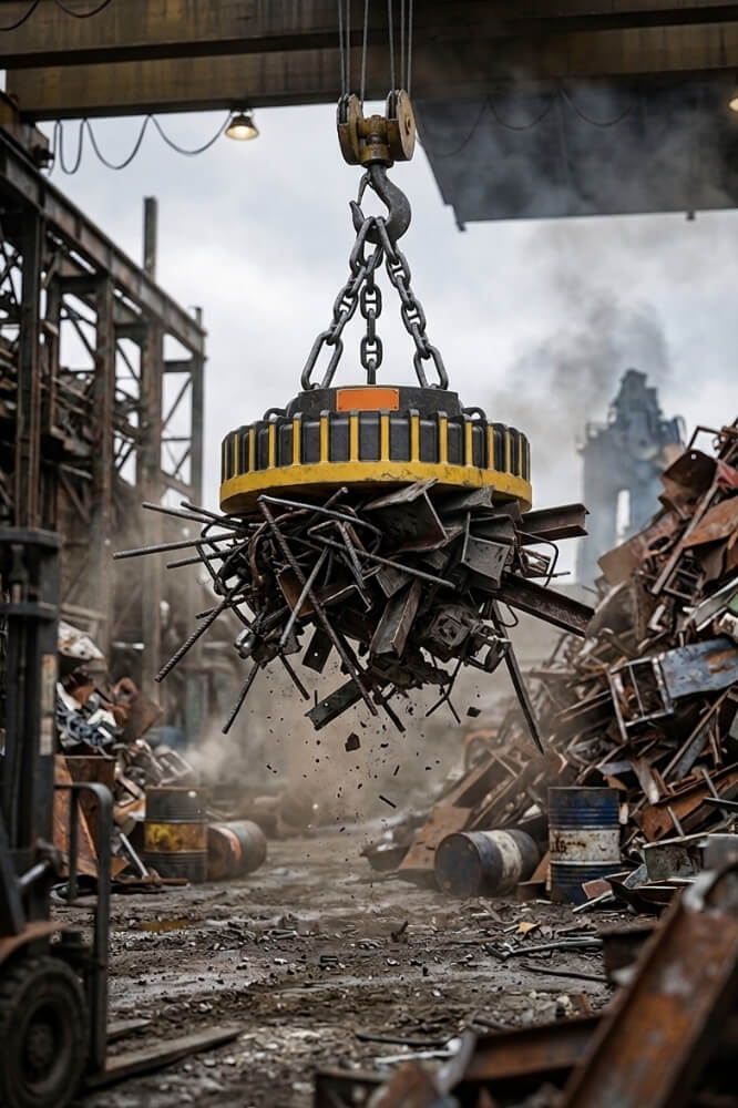 Elektromagnes do złomu kołowy EMG‑SM: niezawodne rozwiązanie dla hut i złomowni