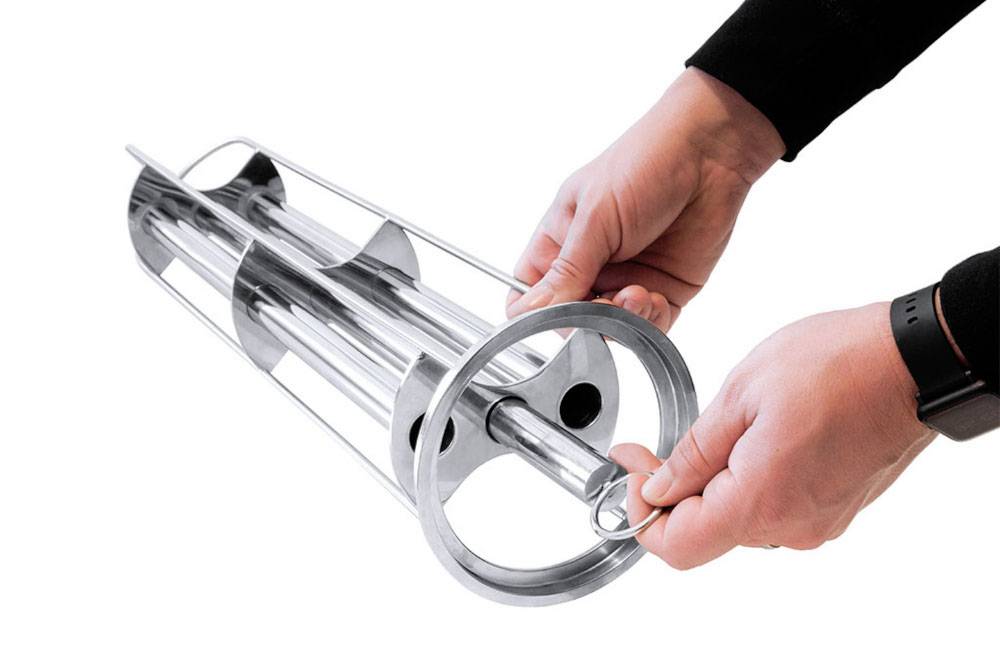 Włóż jeden lub dwa pręty magnetyczne do nośnika według własnego uznania. Zmontowany w ten sposób separator magnetyczny włóż do filtra workowego, dzięki czemu uzyskasz wysoce wydajne urządzenie do separacji bardzo drobnych cząstek ferromagnetycznych i niemagnetycznych.
