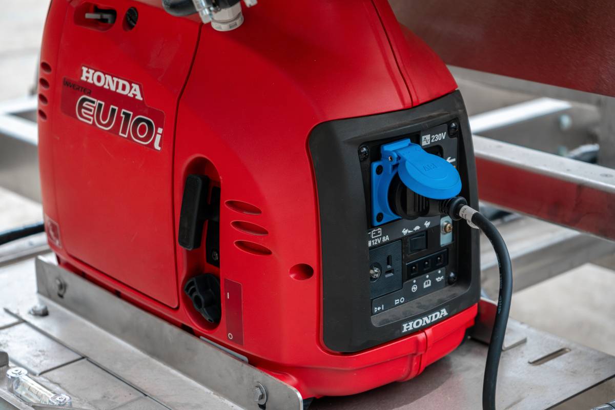 - Inwertorowy agregat prądotwórczy na benzynę (1 kW) ze zbiornikiem o pojemności 120 litrów, zapasowym akumulatorem (150 Ah) i sygnalizatorem ostrzegawczym. Przy pełnym zbiorniku zapewnia autonomiczne działanie krzyża świetlnego przez 1 tydzień przy maksymalnej dziennej mocy światła.