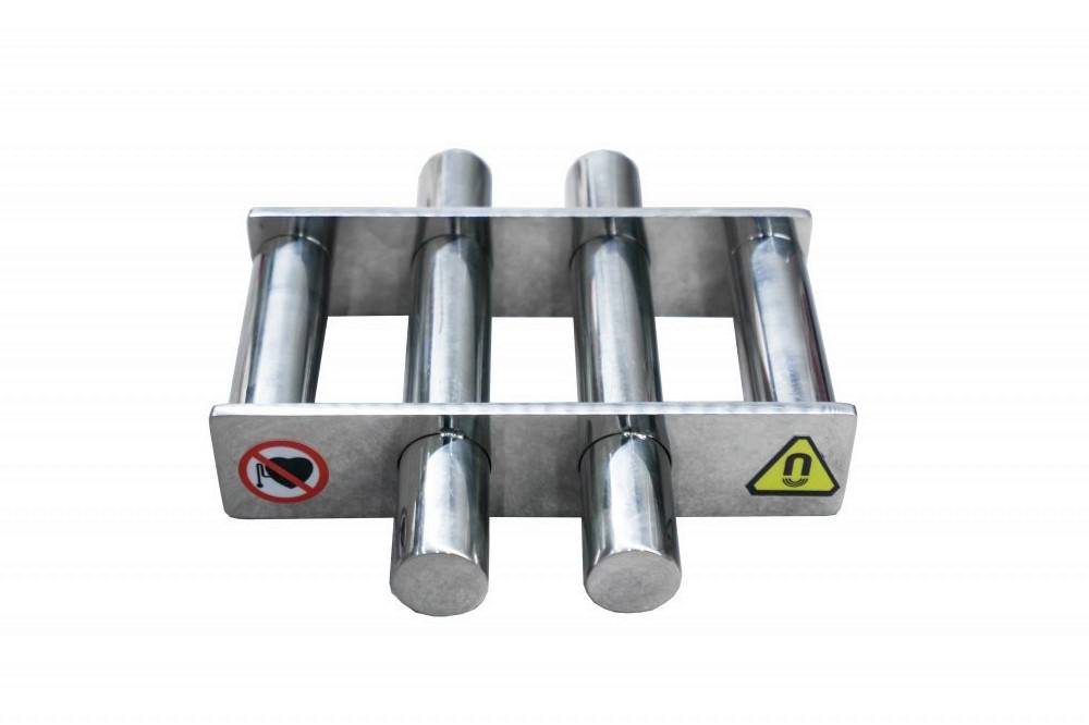 Ruszt ze stali nierdzewnej, w którym są hermetycznie zamknięte rdzenie ze stali nierdzewnej, jest wypolerowany, jednak nie dysponuje systemem łatwego oczyszczania i dlatego należy usuwać wychwycone zanieczyszczenia Fe ręcznie (np. wycierając powierzchnię rusztu). Z drugiej strony ta wersja magnesu do leja zasypowego została wyposażona najsilniejszymi istniejącymi magnesami neodymowymi, generującymi na powierzchni rusztu ekstremalnie wysoką indukcję magnetyczną (ok. 13 500 G).